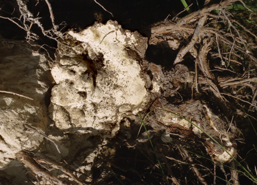 Плодовые тела корневой губки развиваются при благоприятных условиях на корнях, реже у основания ствола. Их трудно заметить и увидеть. При натурном обследовании лесопатологи узнают о присутствии корневой губки по косвенным признакам: характерному скипидарному запаху, которым имеет пораженная древесина, по куртинному усыханию деревьев в насаждении, по специфическому подлеску, который формируется в погибших куртинах.